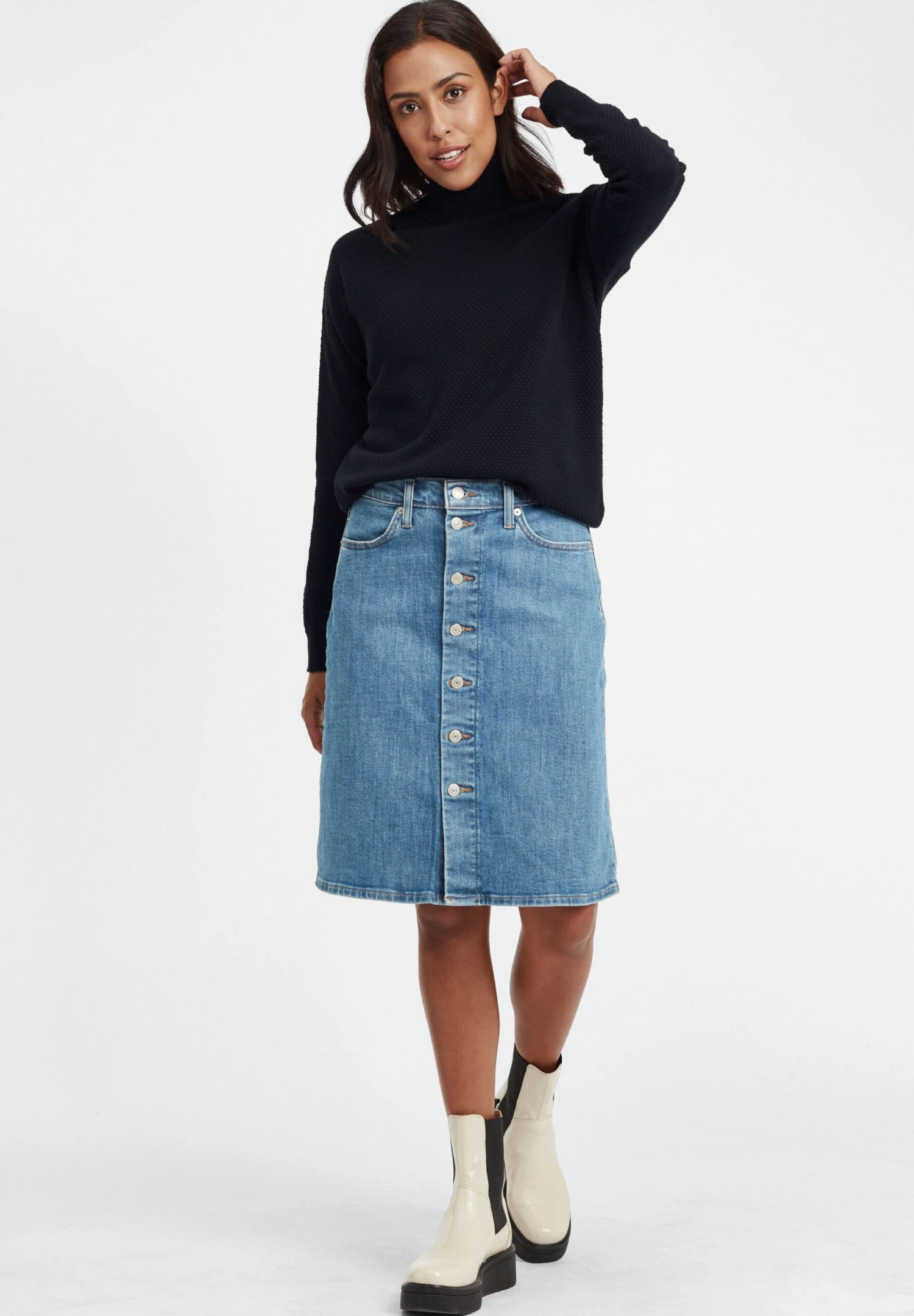 - Collar: Polo neck